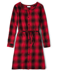 The Children's Place Women's Fall Plaid Long Sleeve Dress