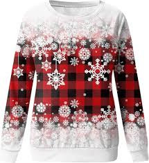 Women's Christmas Sweatshirt Casual Fashion Printing Long Sleeve O-Neck Pullover Top Blouse Wool Sweater, S-3XLc